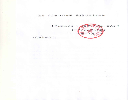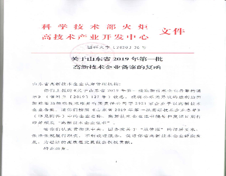 2020年1月末,國家科學(xué)技術(shù)部火炬高技術(shù)產(chǎn)業(yè)開發(fā)中心公布了《關(guān)于山東省2019年第一批高新技術(shù)企業(yè)備案的復(fù)函》國科火字【2020】36號文件,北玻電力復(fù)合材料有限公司首次列入認(rèn)定名單。