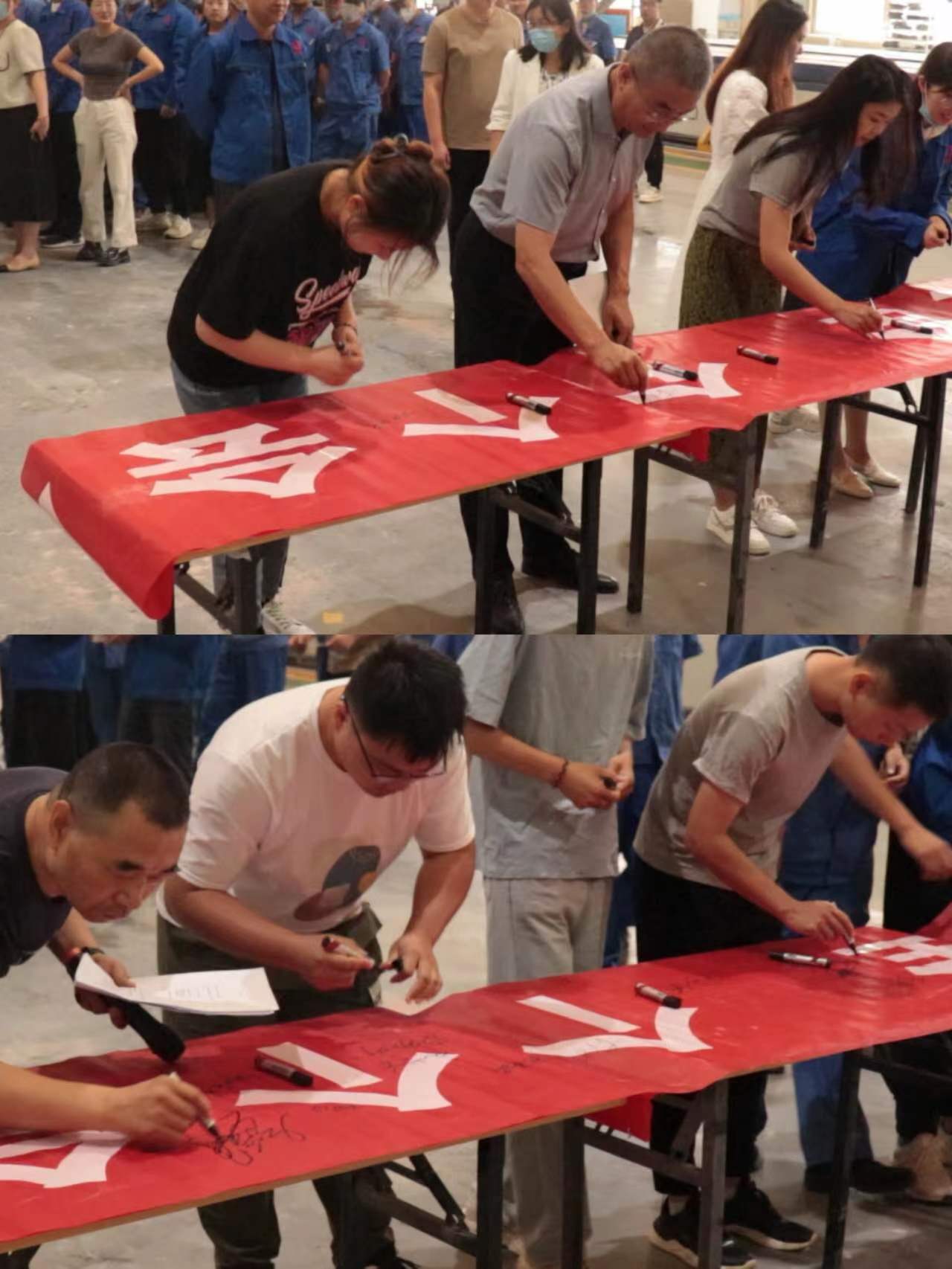 隨后,制造部經(jīng)理畢俊喜進行安全宣誓,及參會人員進行主題橫幅簽名。