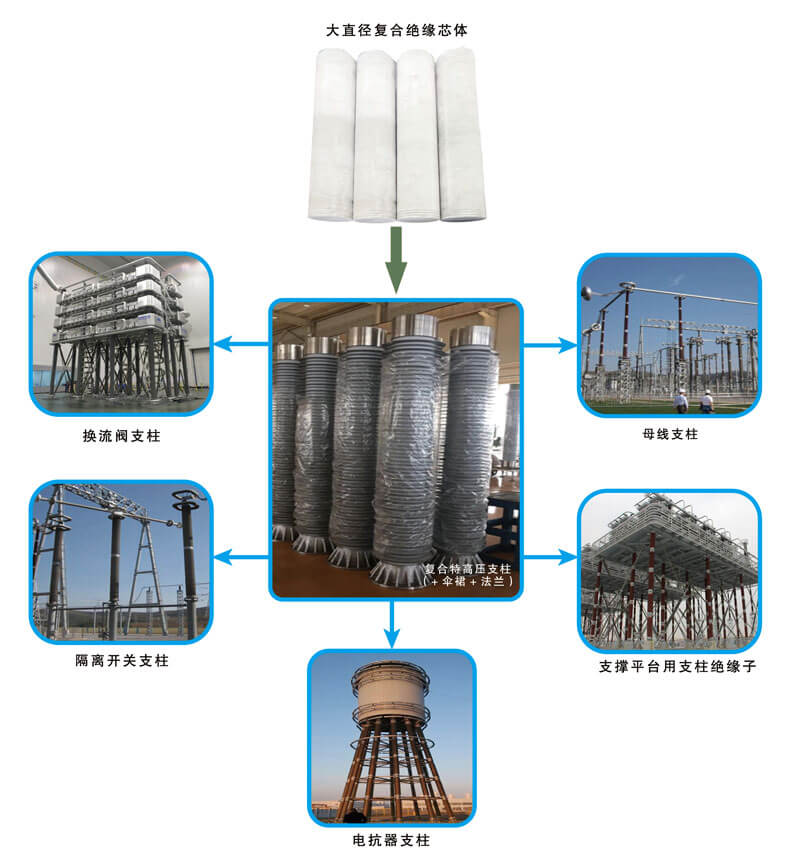 特高壓復(fù)合絕緣支柱芯體由公司在《聚合物基復(fù)合材料液體成型技術(shù)及其應(yīng)用研究》(國家科技進步二等獎)、《多層內(nèi)聯(lián)仿形機織物應(yīng)用與自動化制備技術(shù)》(建材科技進步二等獎)等科研成果的基礎(chǔ)上,結(jié)合特高壓對大直徑絕緣復(fù)合材料支柱的特殊要求研制而成,已授權(quán)專利18項; 公司擁有國內(nèi)先進的大直徑實芯支柱生產(chǎn)線,可年產(chǎn)直徑150mm-350mm、長度6.2m以內(nèi)的支柱芯體。